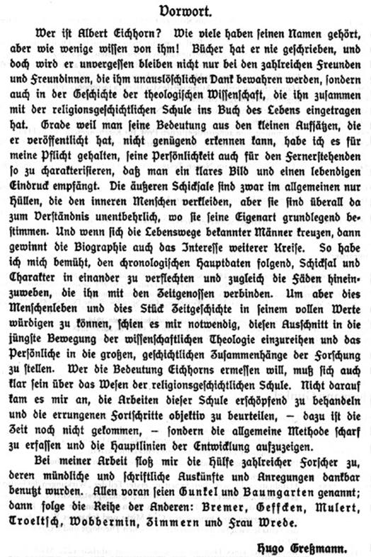 Primärliteratur :Das Abendmahl im Neuen Testament (= Hefte zur ChW 36), 1898. Sekundärliteratur :Ernst Barnikol, Albert Eichhorn (1856-1926). Sein "Lebenslauf", seine Thesen 1886, seine Abendmahlsthese 1898 und seine Leidensbriefe an seinen Schüler Erich Franz (1913/1919) nebst seinen Bekenntnissen über Heilige Geschichte und Evangelium, über Orthodoxie und Liberalismus, in: Wissenschaftliche Zeitschrift der Martin-Luther-Universität Halle-Wittenberg, Ges.-Sprachwi. Reihe IX/1, Halle 1960, S. 141-152; Hugo Greßmann, Albert Eichhorn und Die Religionsgeschichtliche Schule, Göttingen 1914; Horst Renz, Albert Eichhorn und die Anfänge der Religionsgeschichtlichen Schule (ungedrucktes Manuskript), Augsburg 1985. |